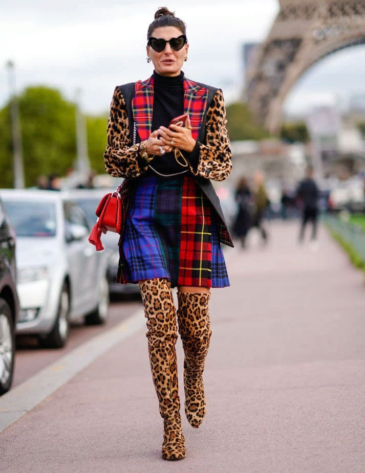 Сочетание леопардового принта и клетки.