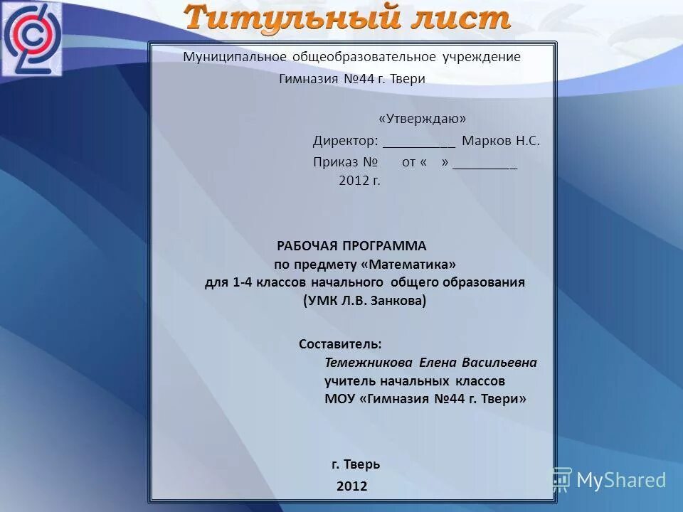 Как оформить титульный лист проекта.