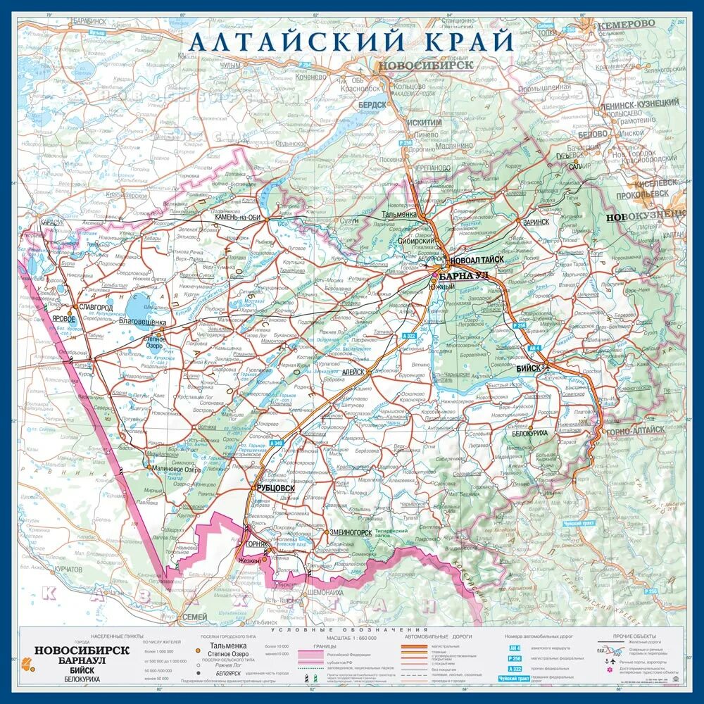 Карта Алтайского края с населенными пунктами подробная.