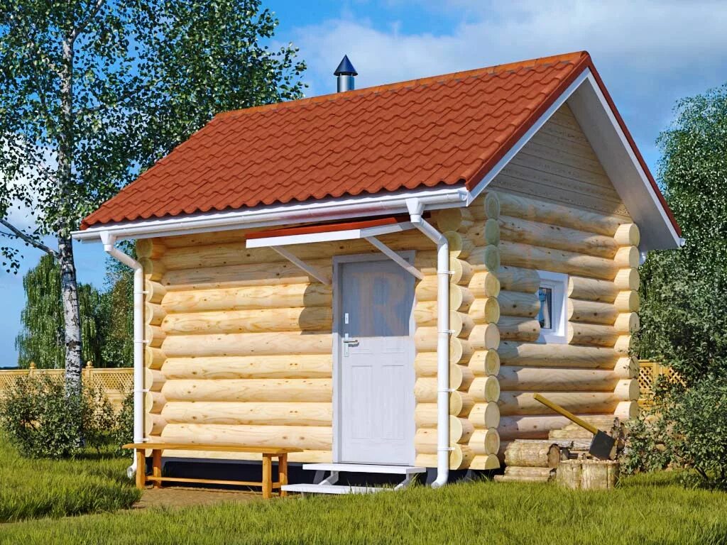 Рубленая баня из бревна.