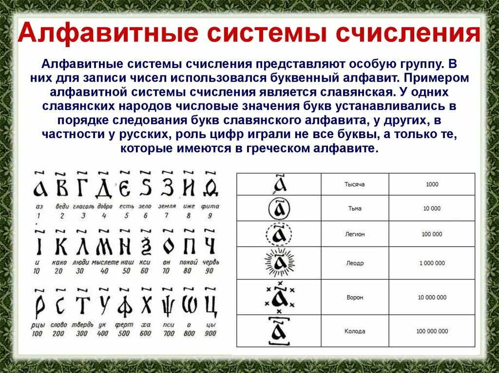 Обозначение цифр буквами.