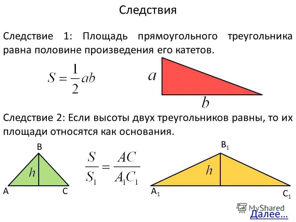 Формула площади прямоугольного треугольника 4 класс.