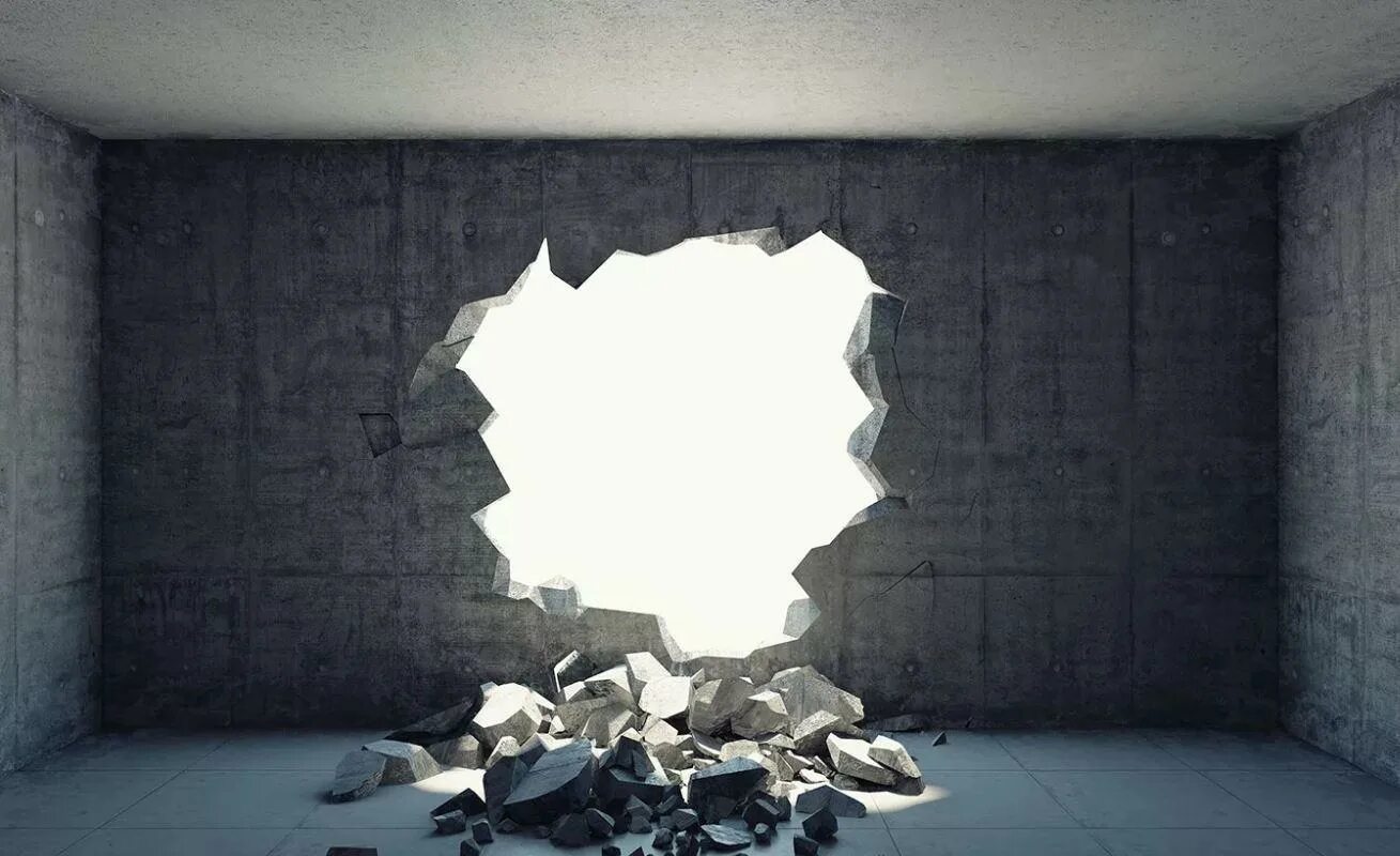 Дыра в бетонной стене.