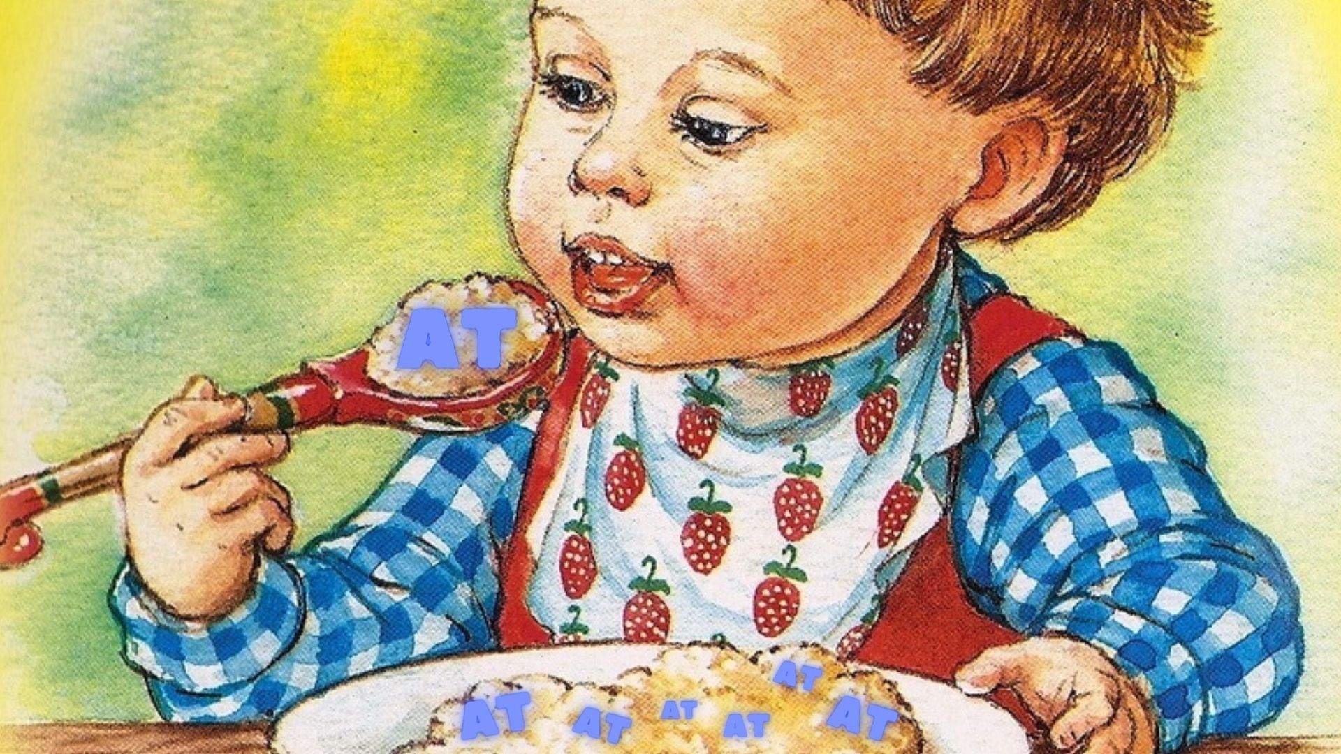 Мультяшные дети едят.