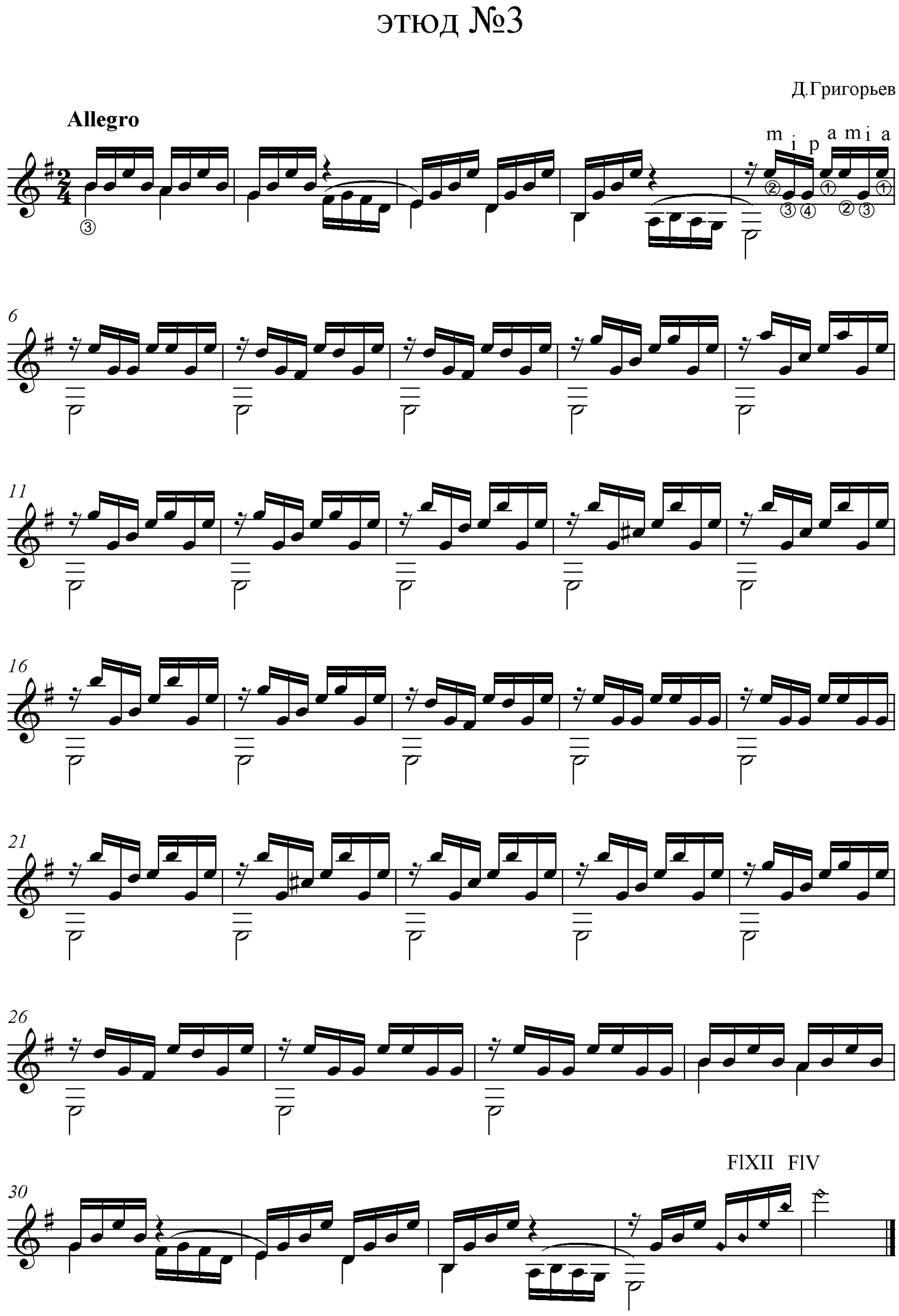 Этюд номер 6 Григорьев Ноты.