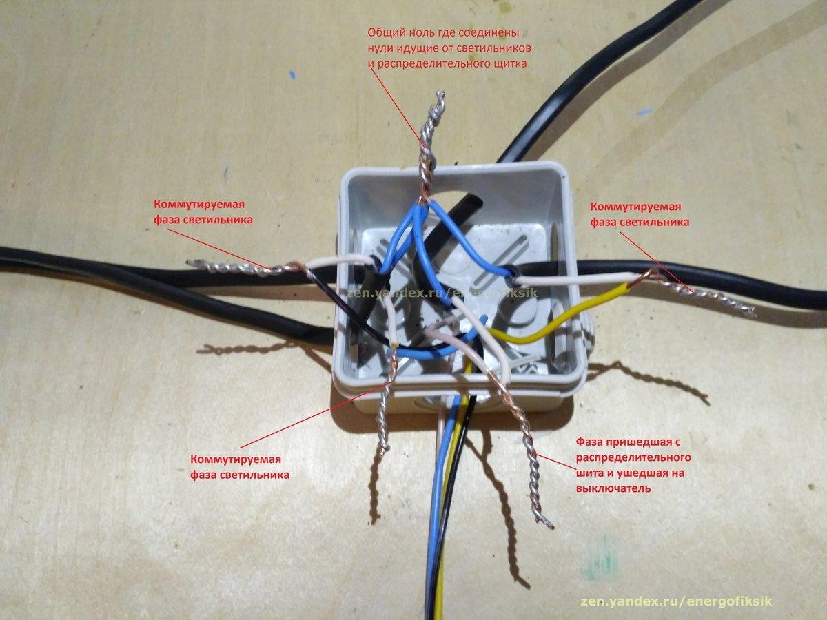 Выключатель света одноклавишный соединение.