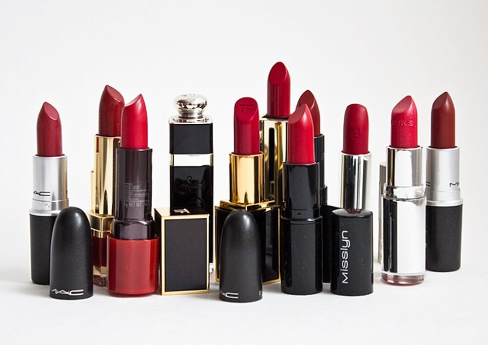 Косметика помада красная.
