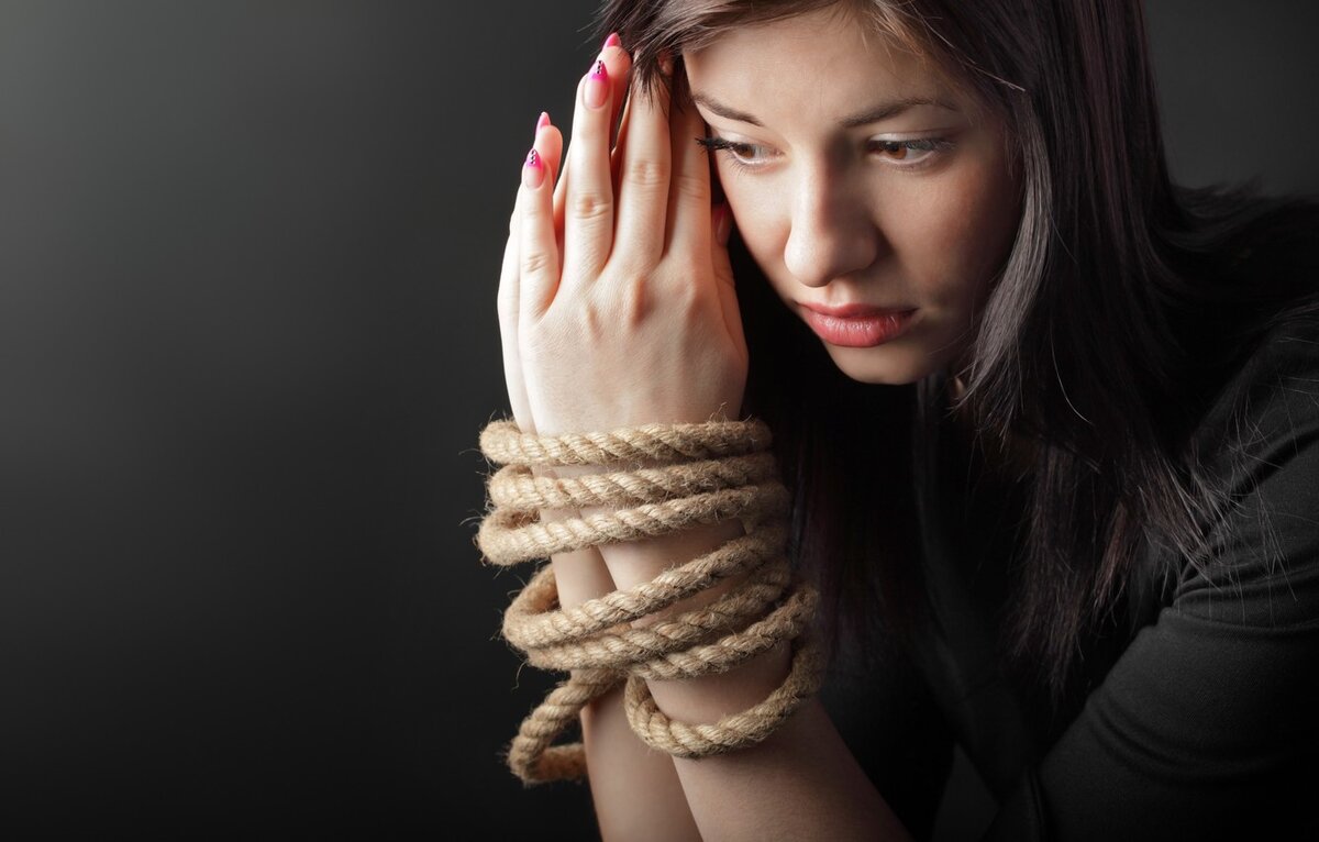 Связанные руки девушки.