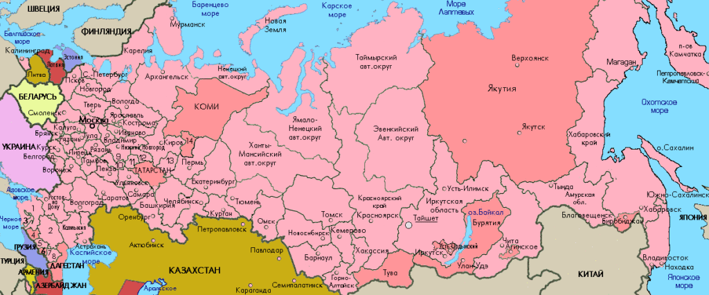 Иркутск на карте России с городами.