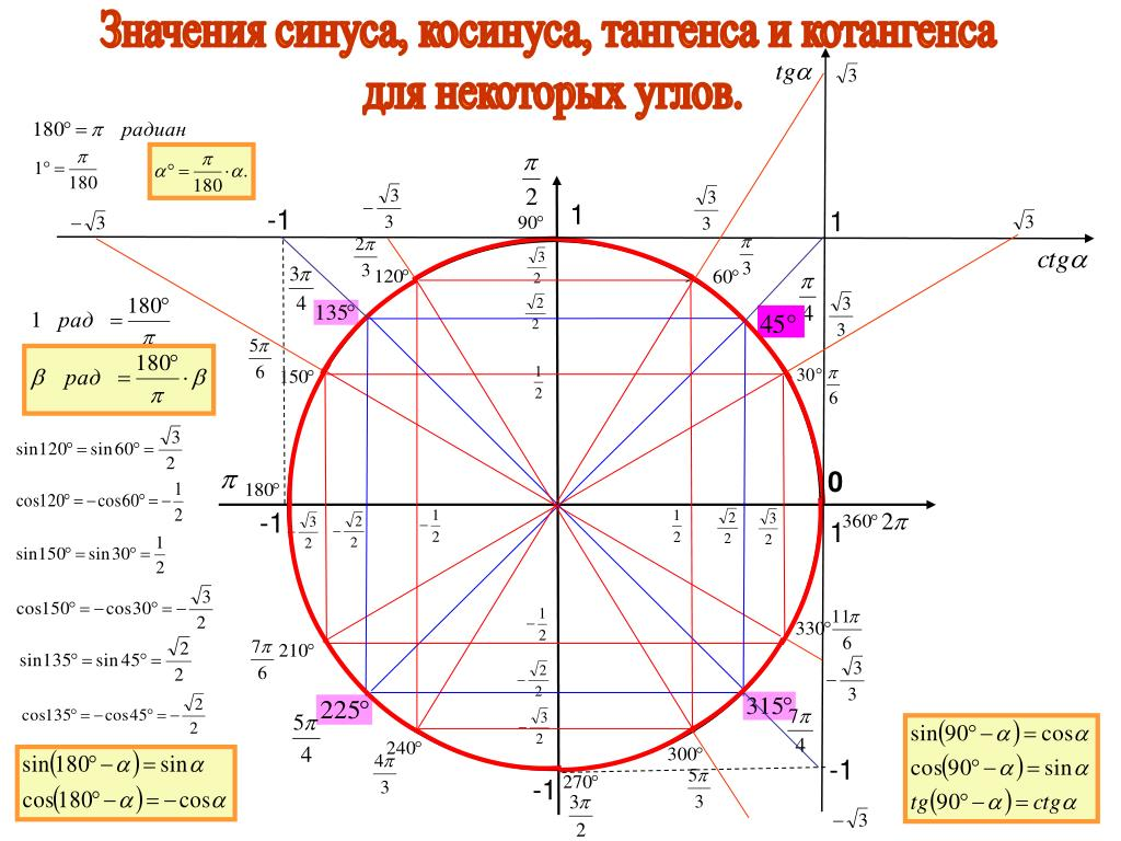 Таблица значений sin cos TG.