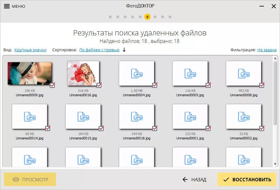 Восстановление удаленных фотографий.