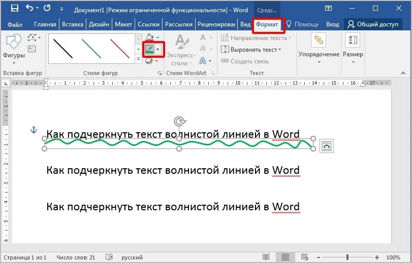 Подчеркнуть текст в Ворде.