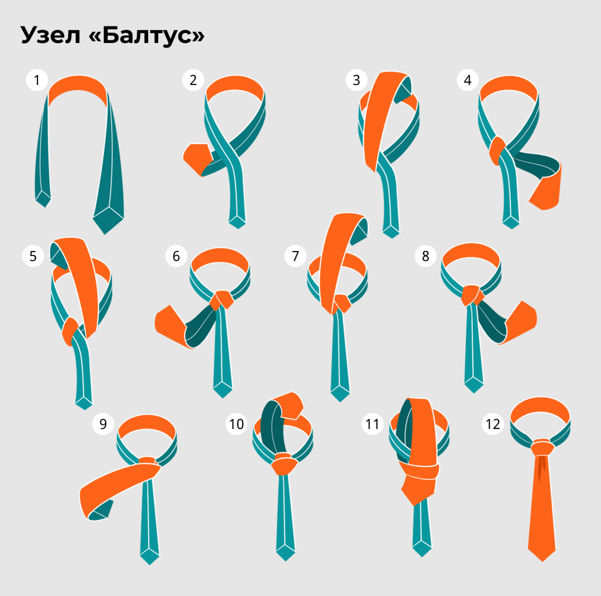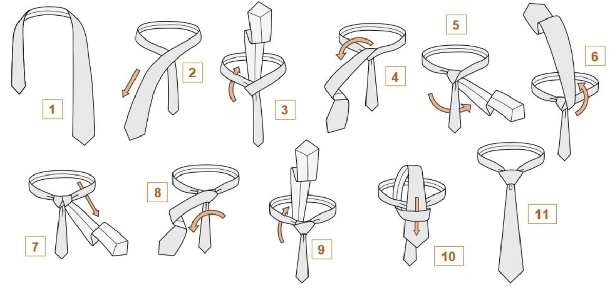 Пошаговая схема завязывания галстука.