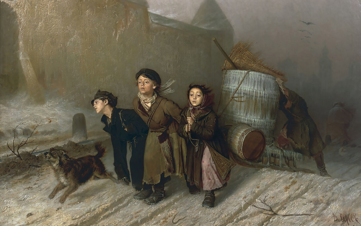 Ученики мастеровые везут воду.