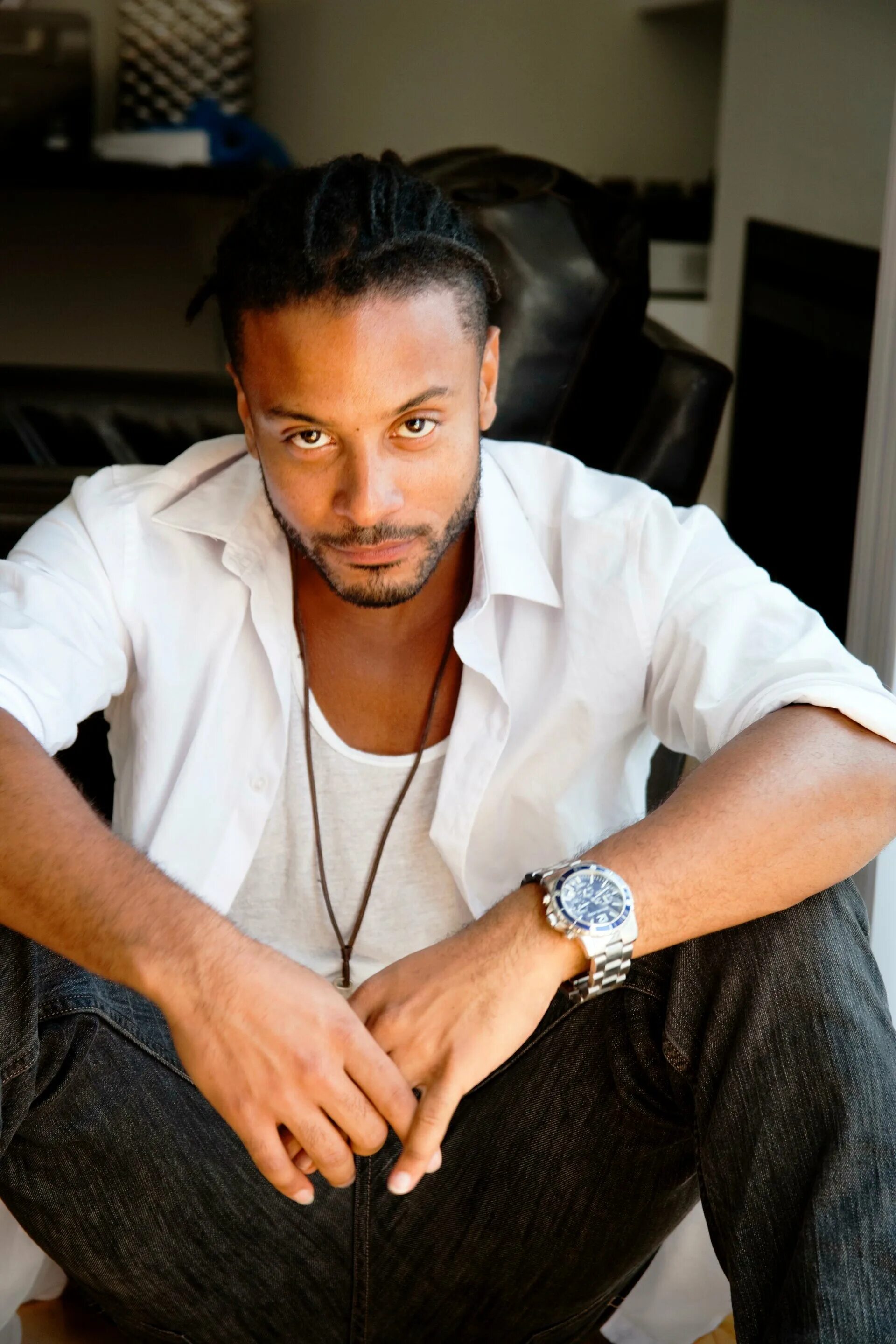 Актер негр с желтыми волосами.