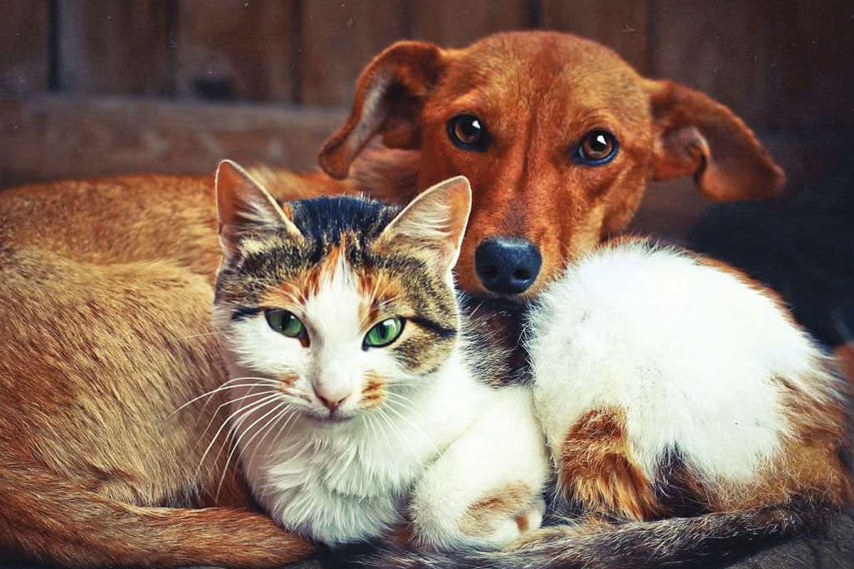 Коты и собаки вместе.