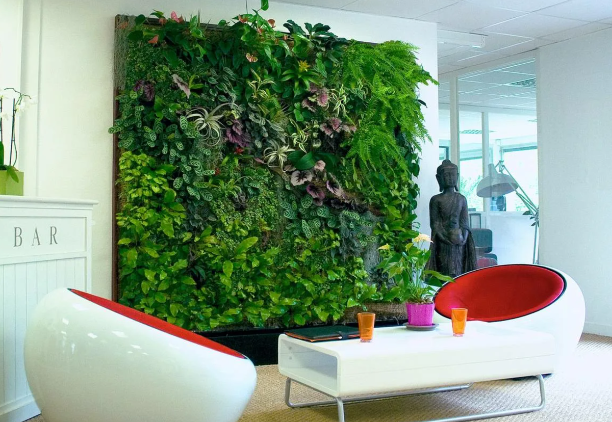 Искусственный газон на стене.