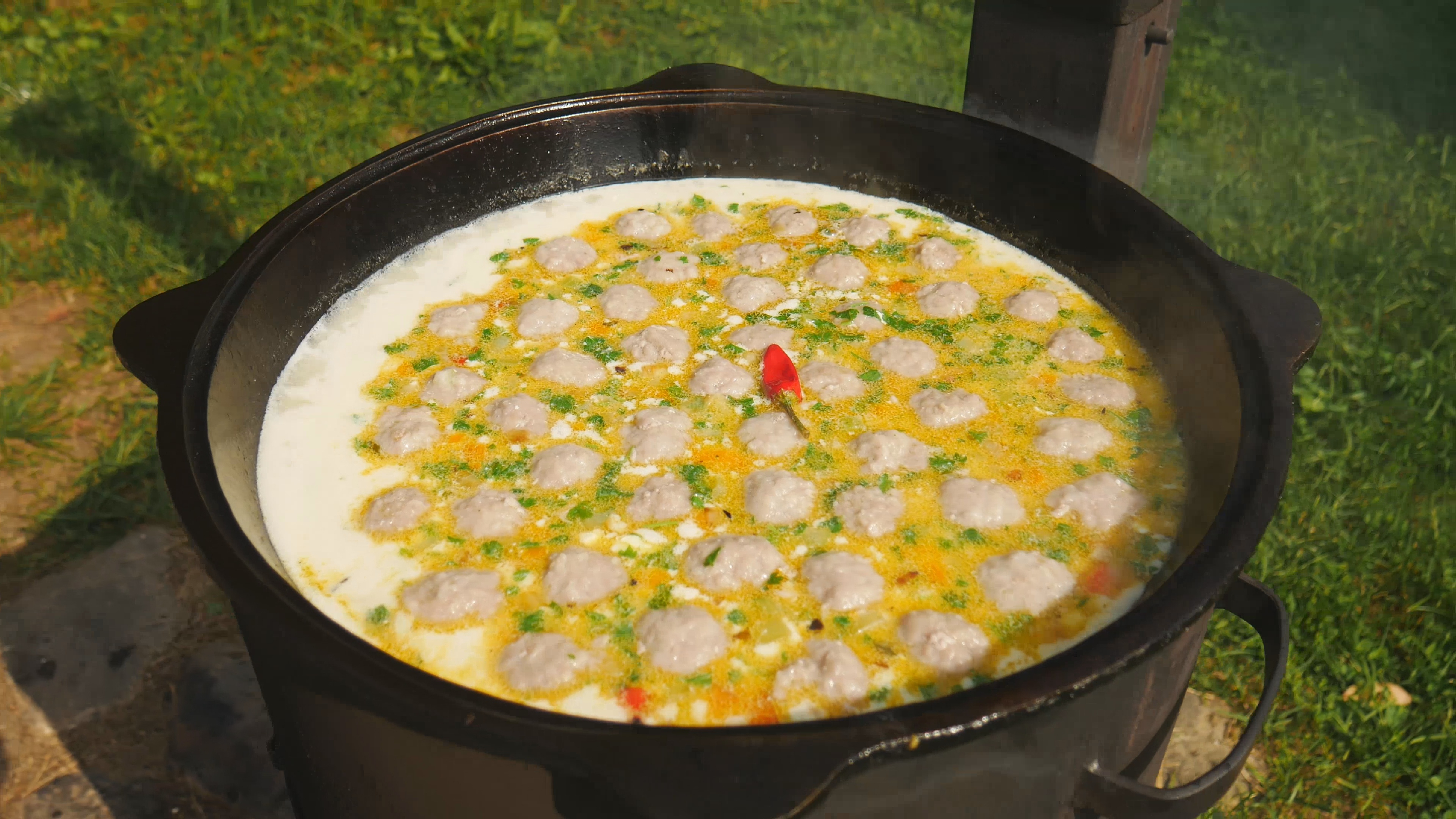 Грузинские блюда в казане на костре.