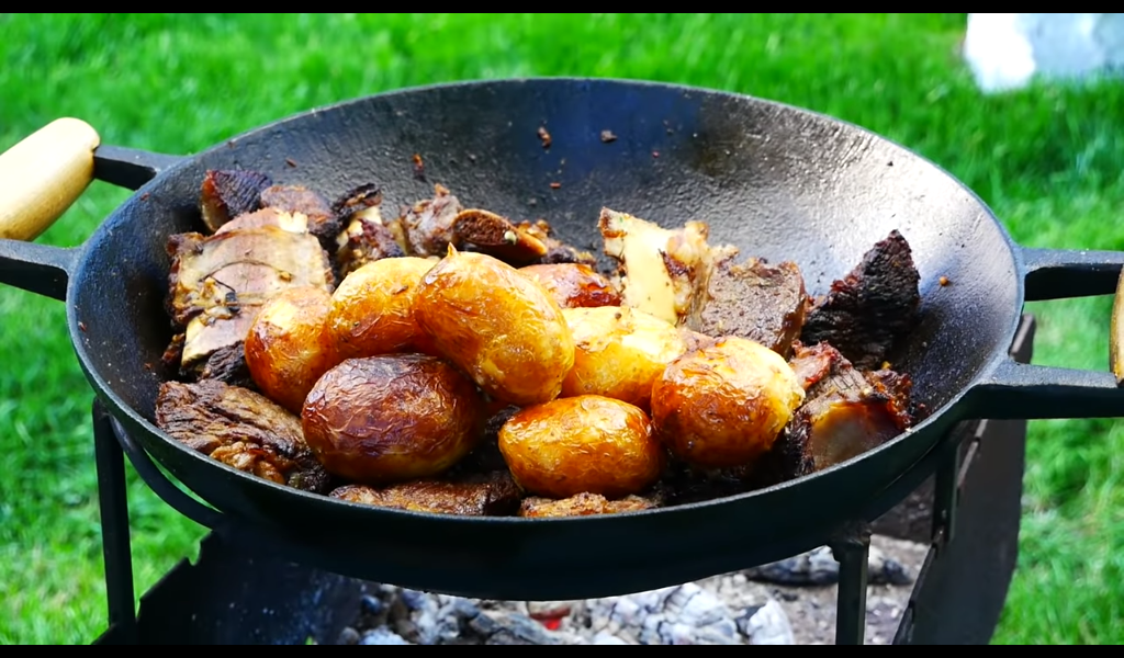 Блюда в казане на огне.