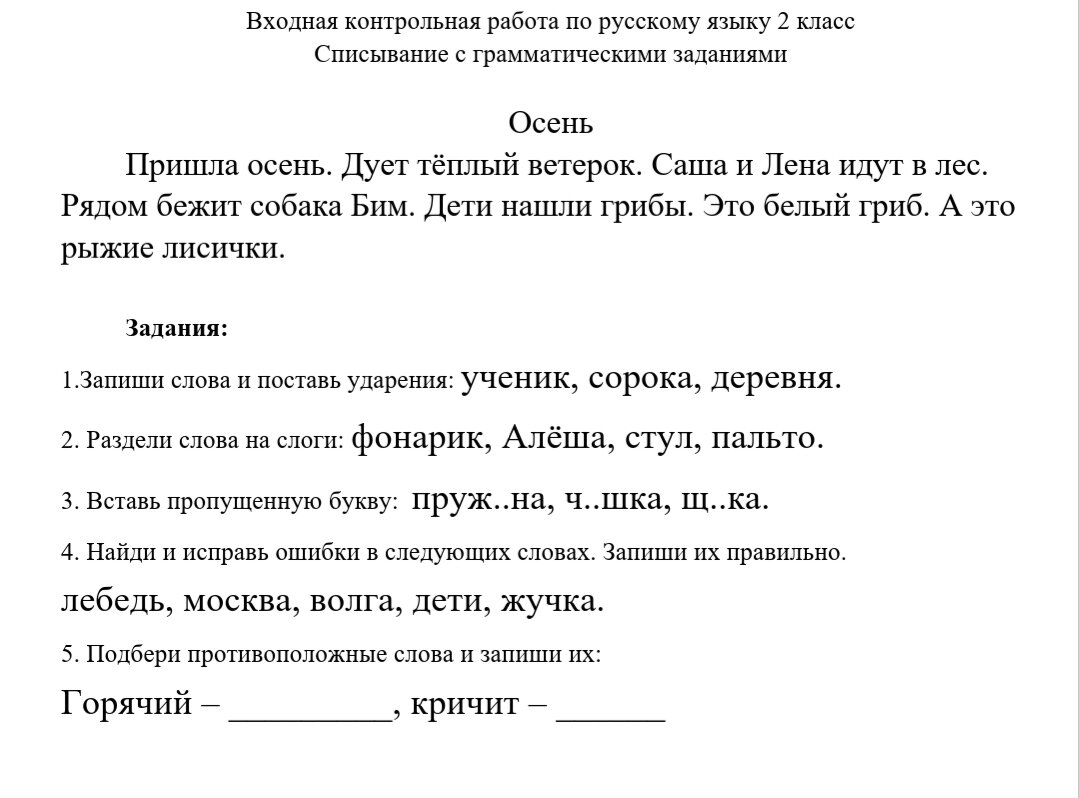 Контрольная по русскому 2 беларусь.