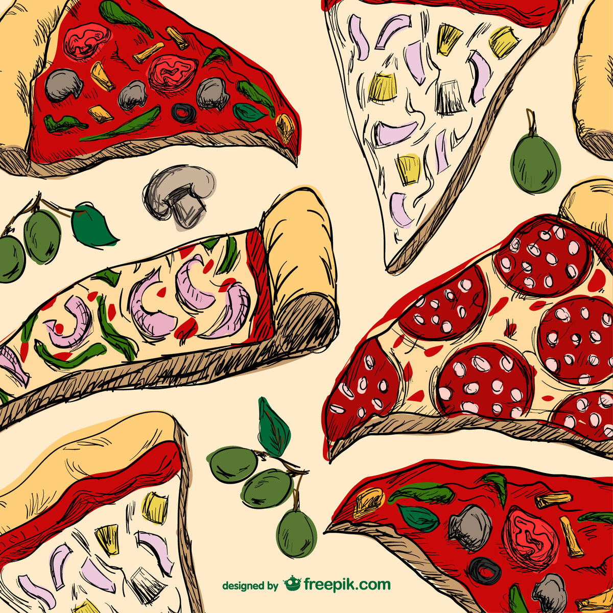 Рисунок пиццы для срисовки.