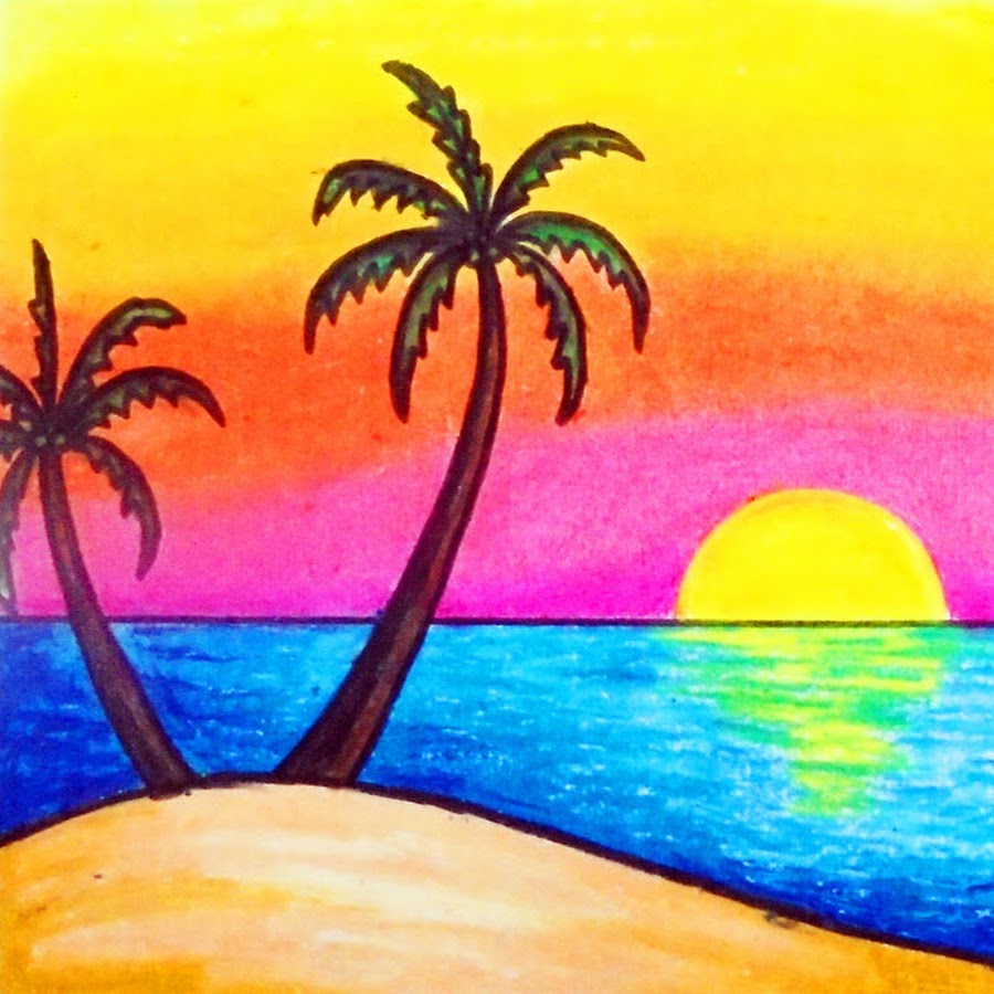 Пейзаж карандашами цветными 5 класс.