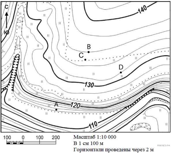 Рельеф местности в изолиниях.
