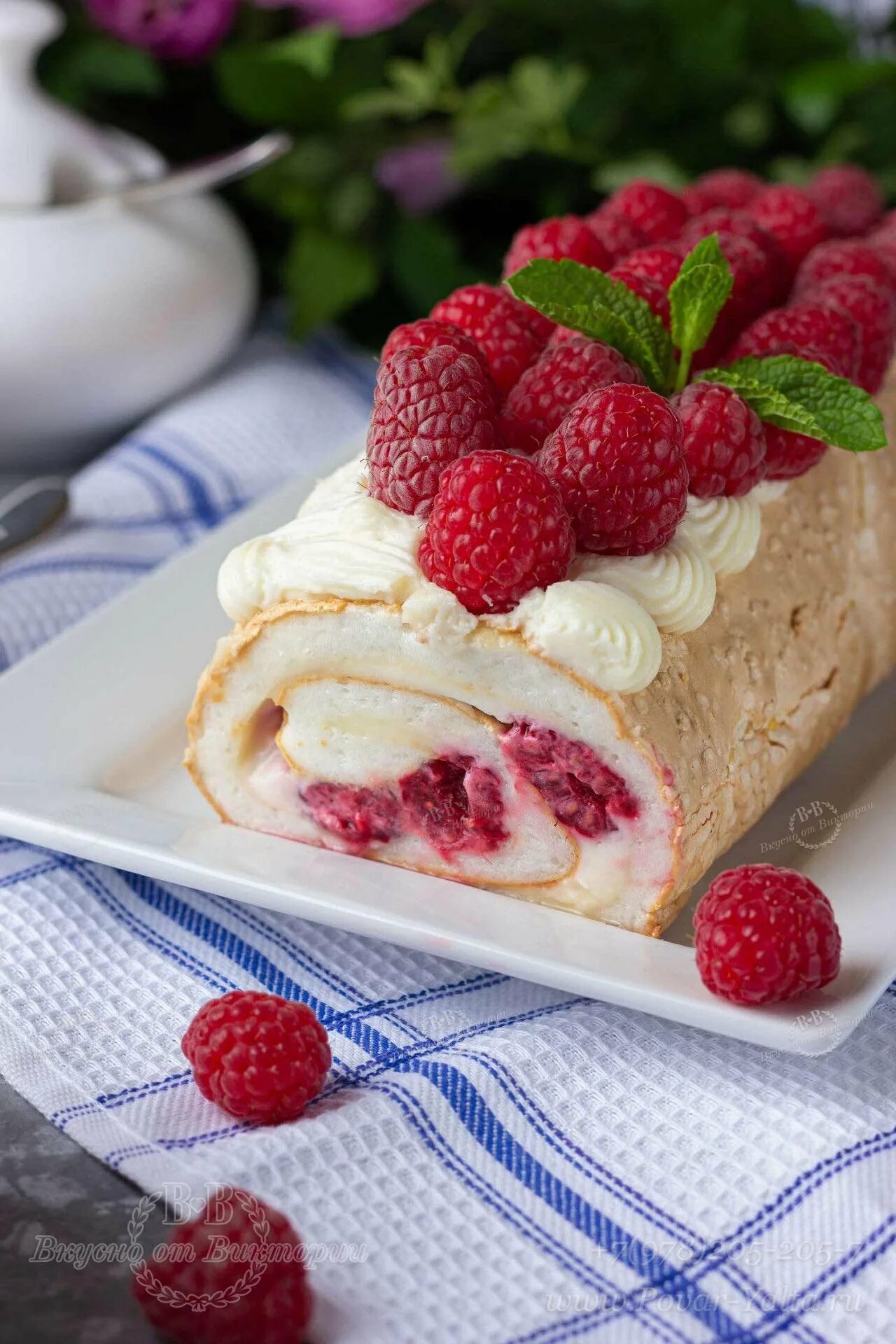Меренговый рулет с малиной.