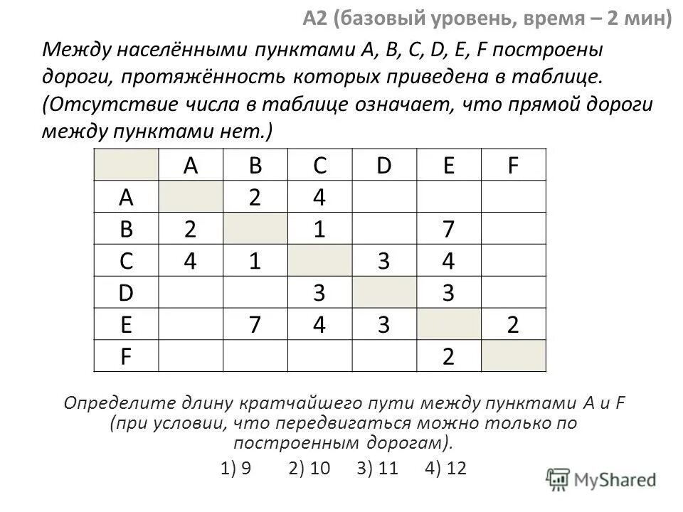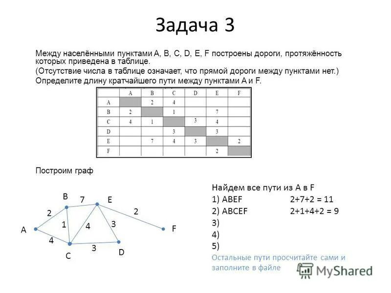 Определите длину кратчайшего пути.