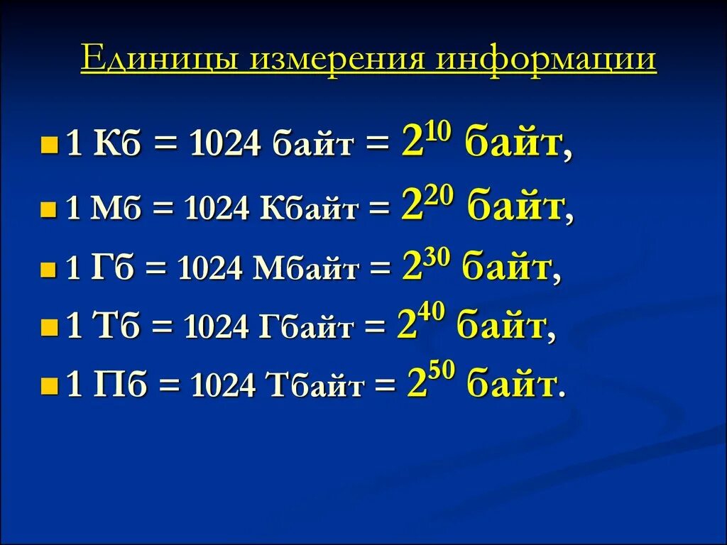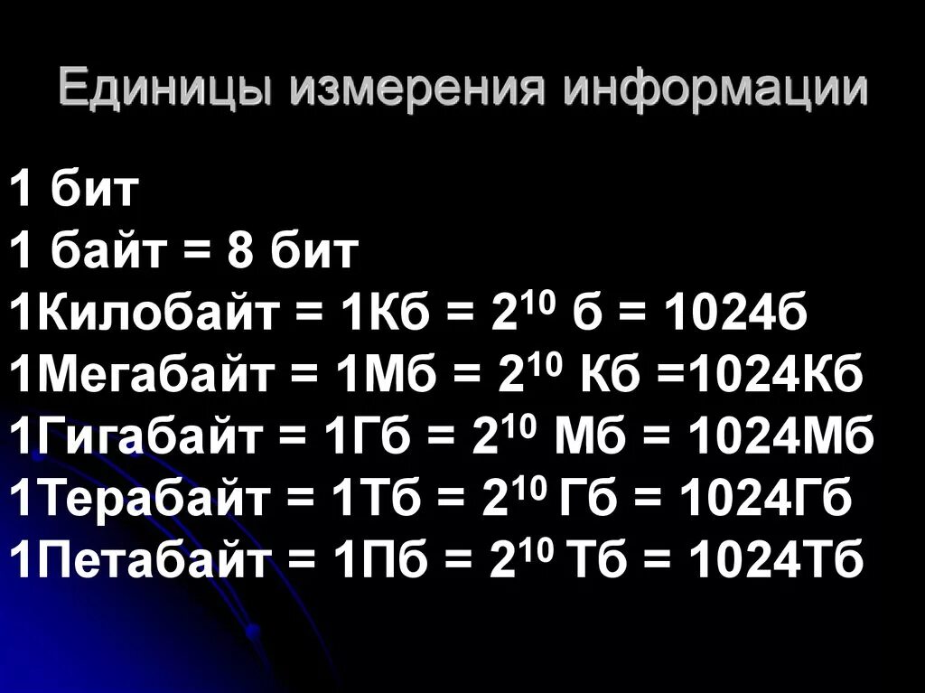 Байты килобайты мегабайты гигабайты таблица.