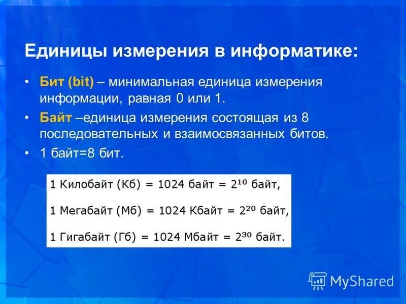 Единицы измерения единиц информации.