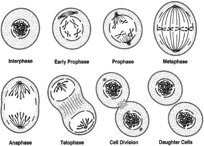 Фазы деления клетки митоз рисунок.
