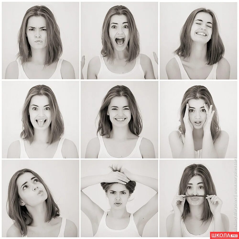 Различные выражения лица.