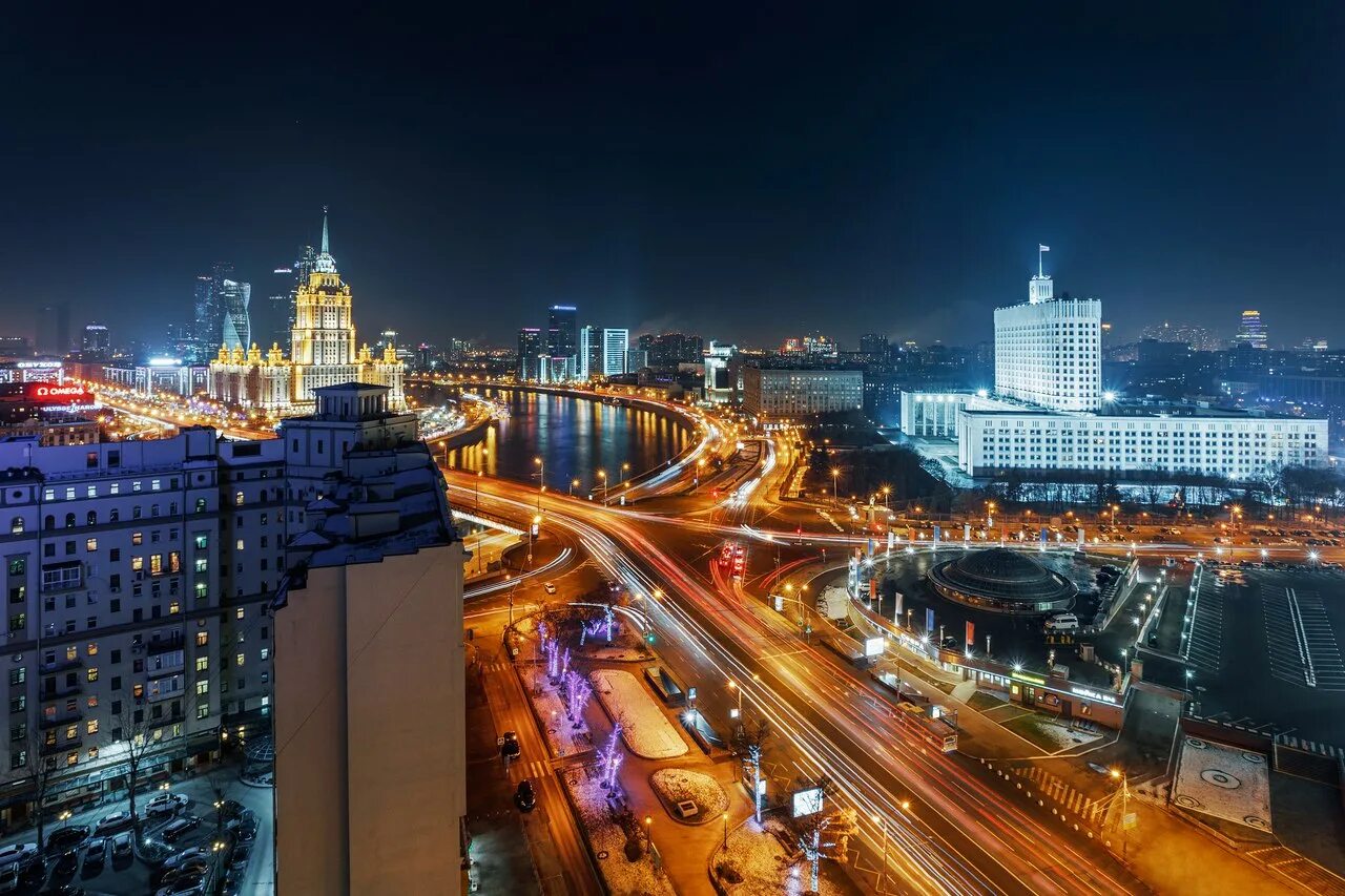 Красивые места в Москве ночью.