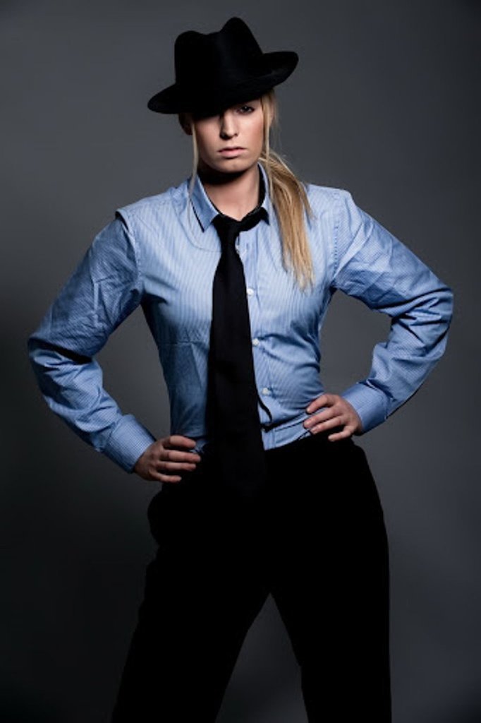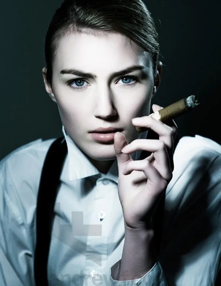 Девушка в костюме с сигарой.