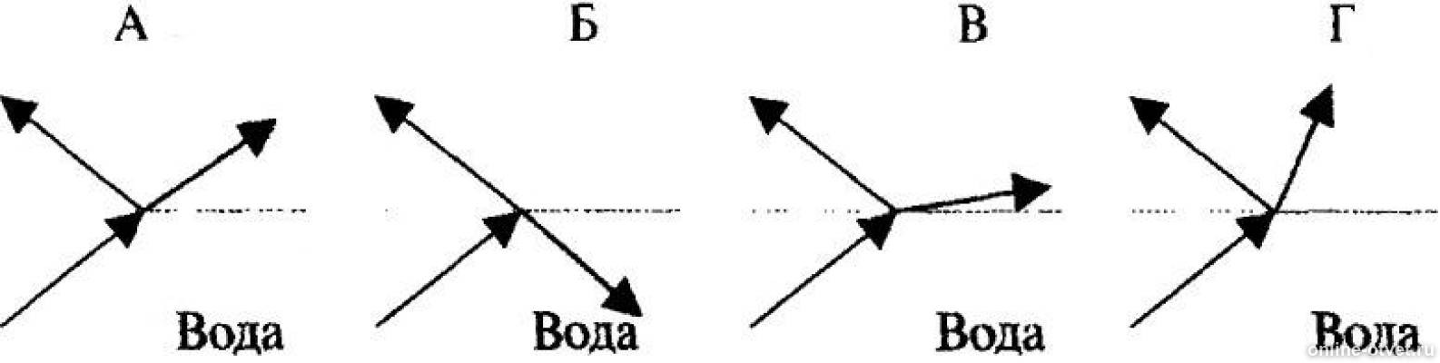 Ход луча из воды в воздух.