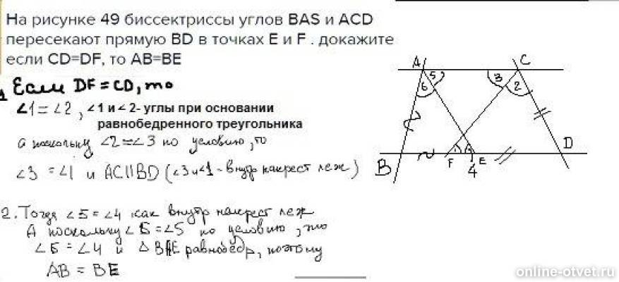 На рисунке 49 биссектрисы углов Bac и ACD пересекают прямую.