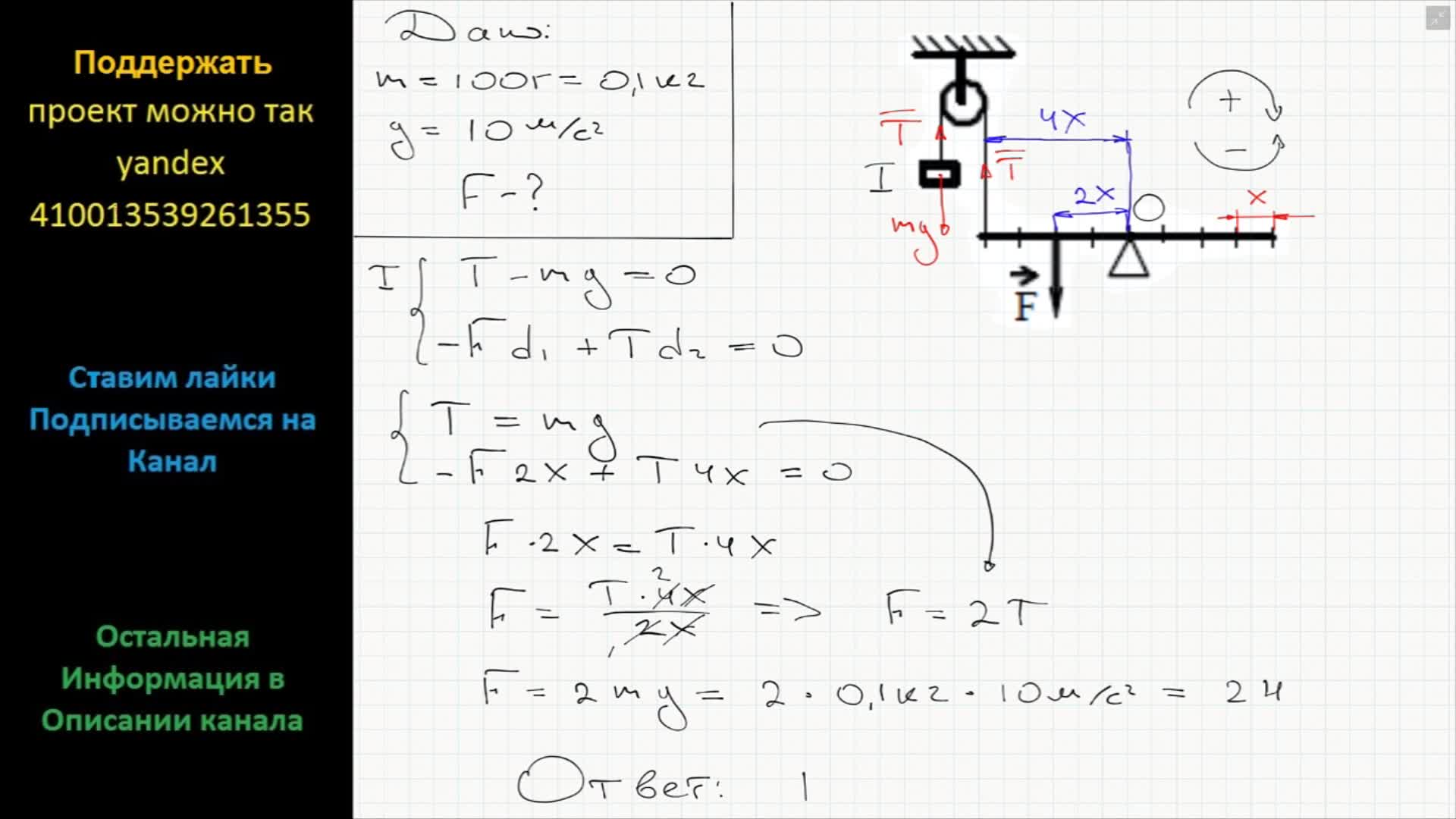 Блок, показания динамометров в системе блоков.