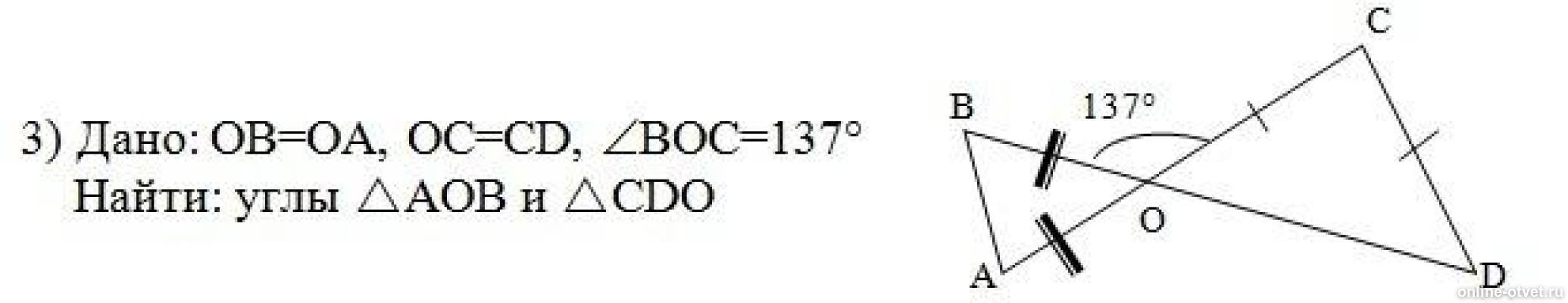 Докажите, что oв = OА, если известно, что ∠d = ∠c, OC = od.