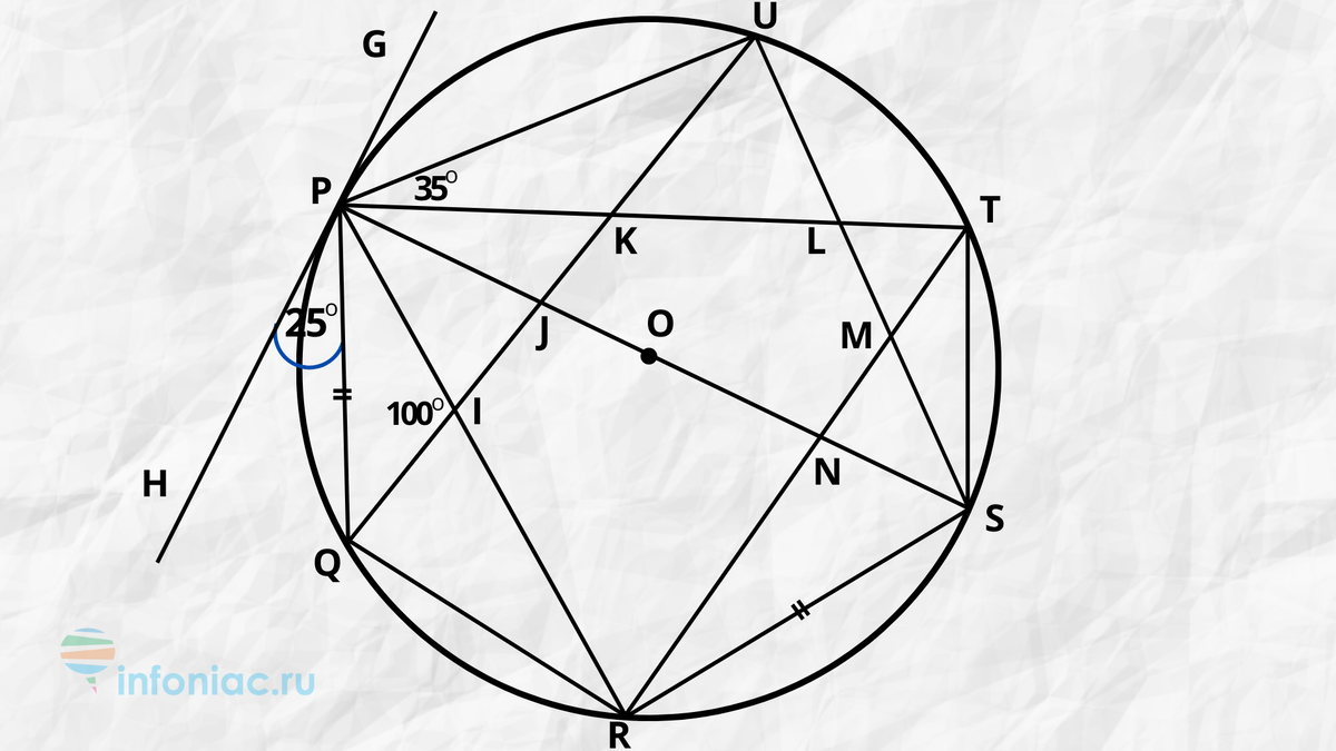 На рисунке изображена окружность с центром о.