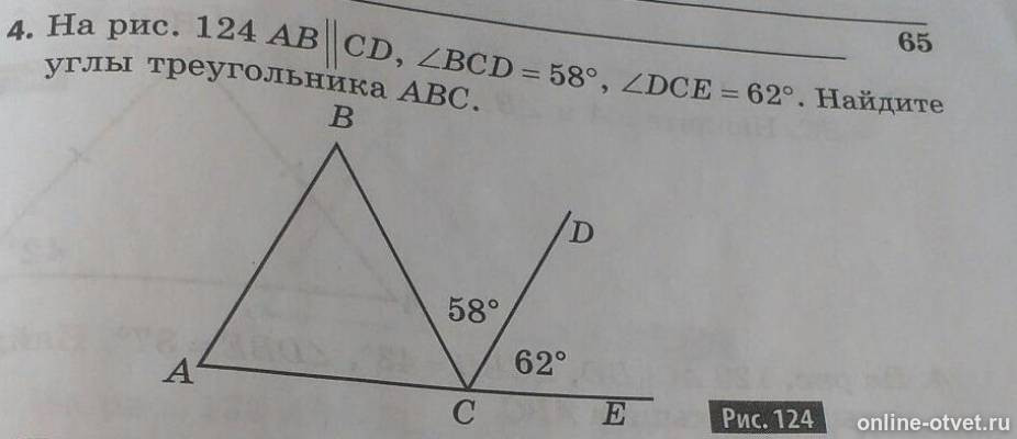 Угол 58 градусов.