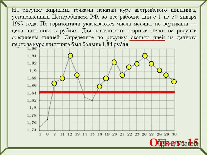 На рисунке жирными точками показан курс евро с 2017 года.