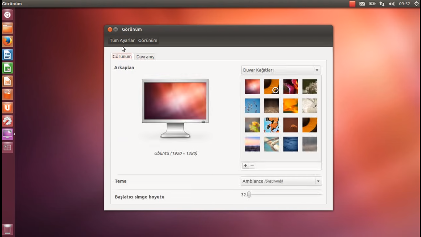 Панель управления убунту.