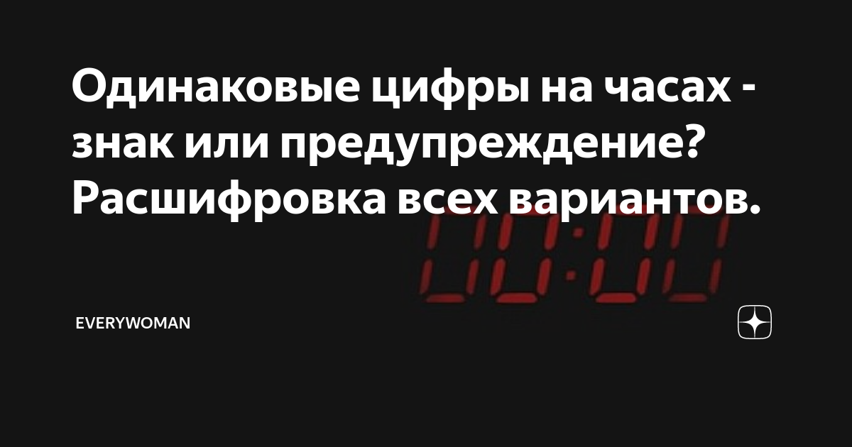 Одинаковые цифры на часах значение.