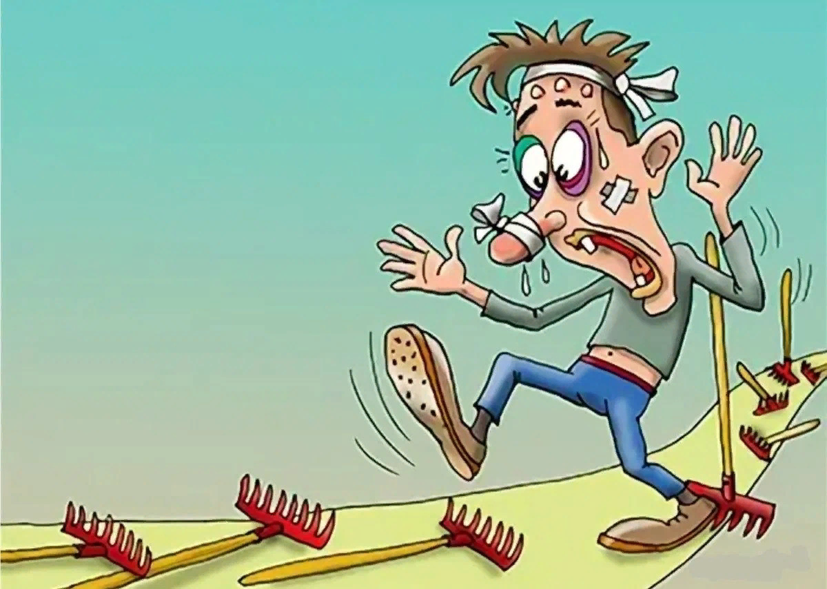 Наступить на грабли карикатура.