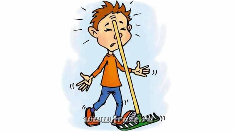 Человек наступает на грабли.