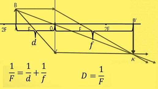 Формула тонкой линзы для 2f>d>f.