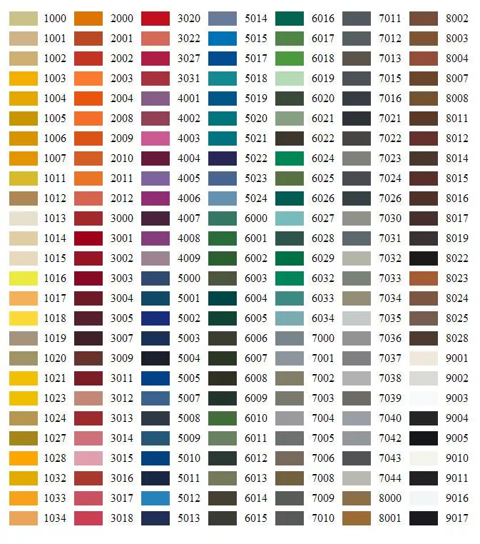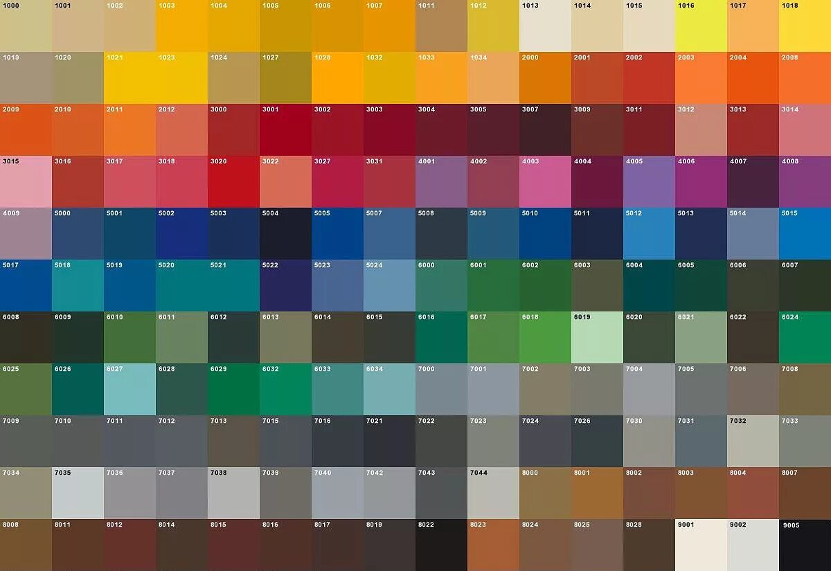 Таблица цветов RAL k7.