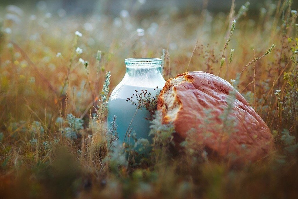 Кувшин с молоком на природе.