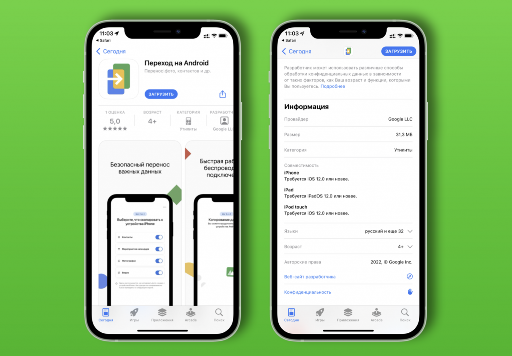 Перенос информации с андроида на андроид приложение.